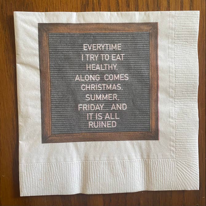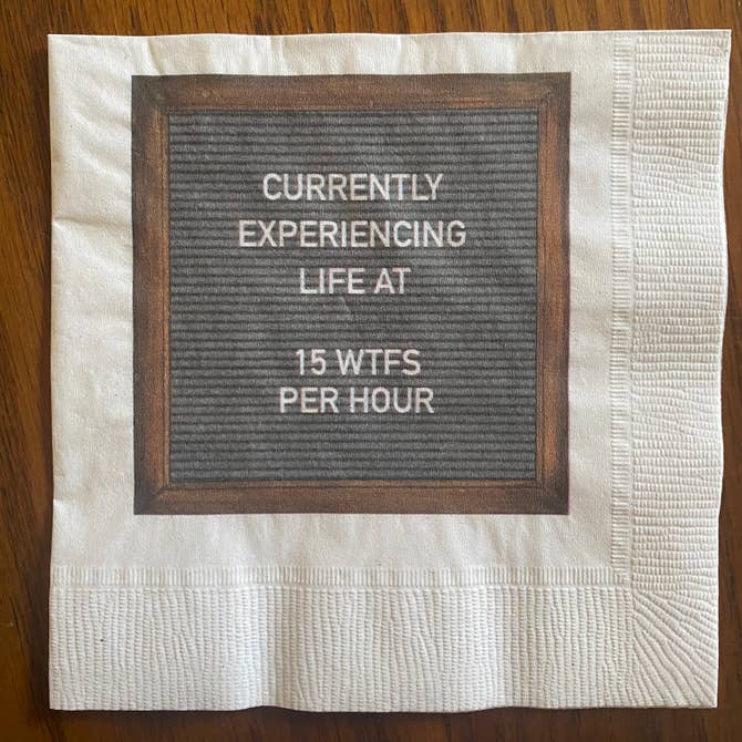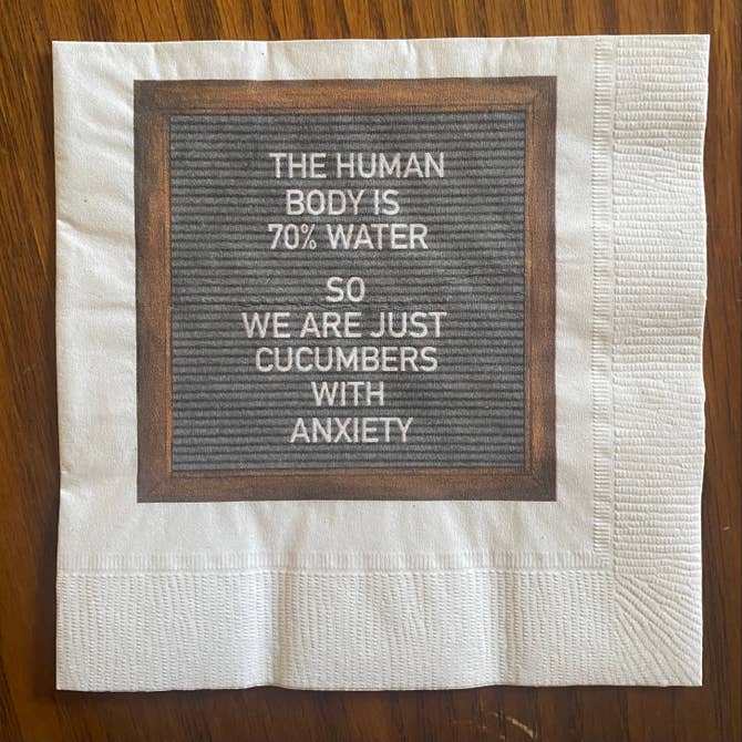 Add a bit of humor for some who needs a pick me up or just a bit of encouragement wrapped up in a bit of laughter.  This set of Felt board quotes are cheerful reminders about the curves in everyday life. Napkins are printed on recycled paper in Oshkosh, WI. Unlike most napkin sets, these napkins have multiple fun designs in each boxed set- 5 original designs/ 4 of each.