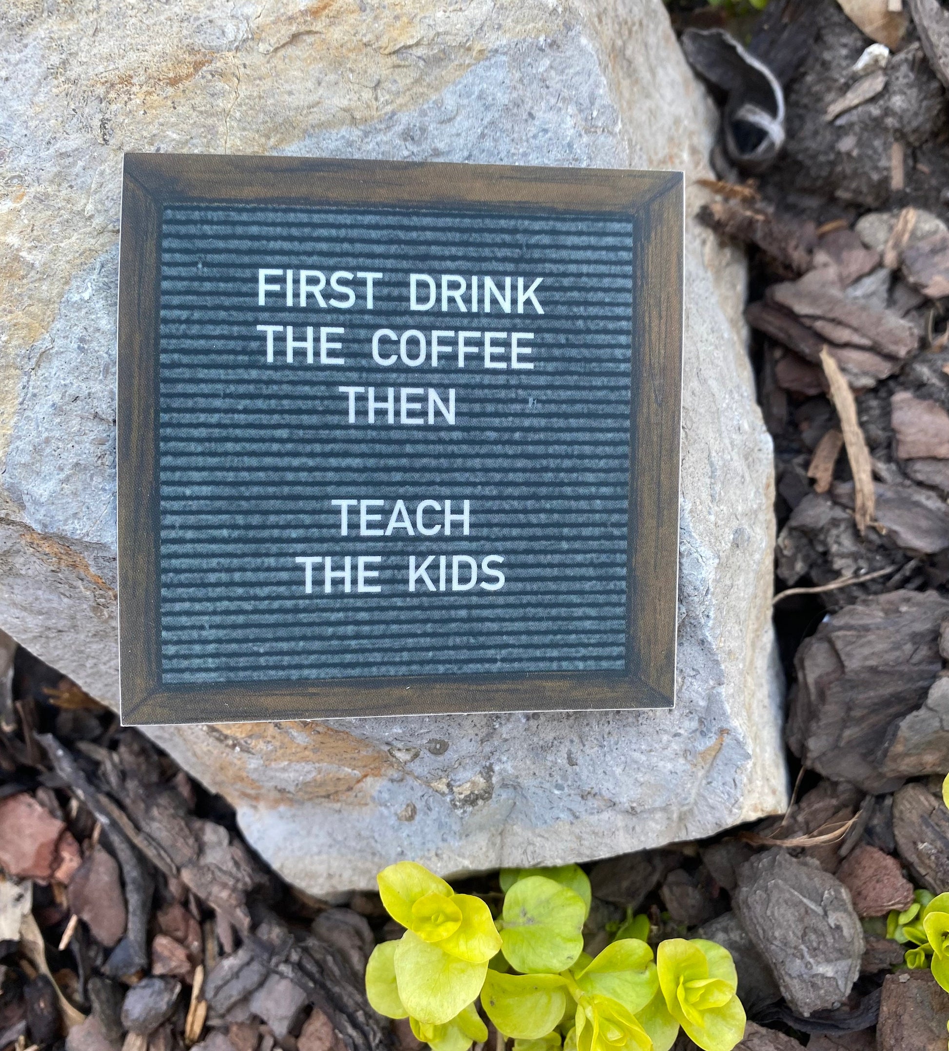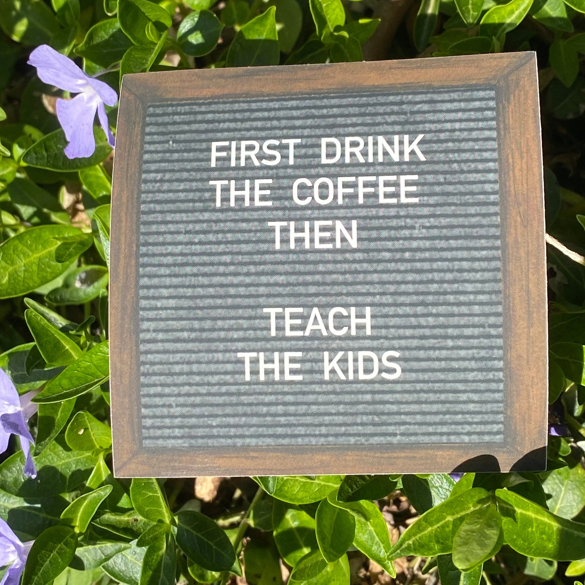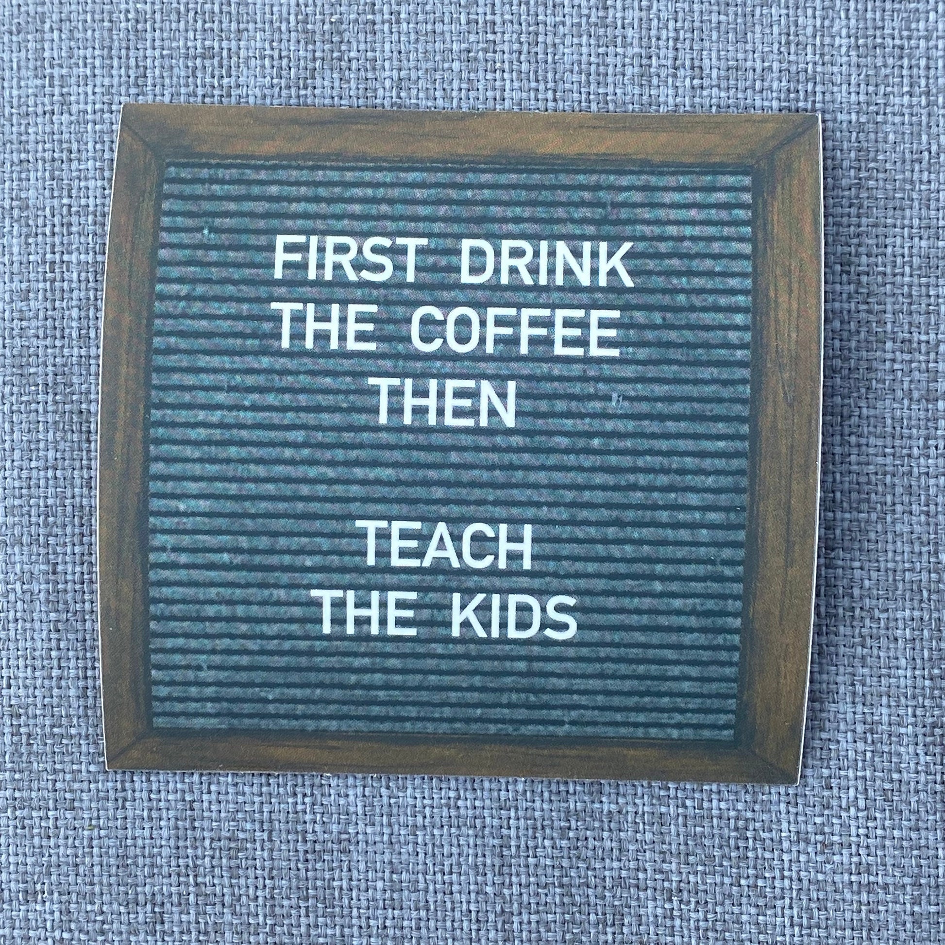 "FIRST DRINK COFFEE THEN TEACH KIDS"- felt board sticker