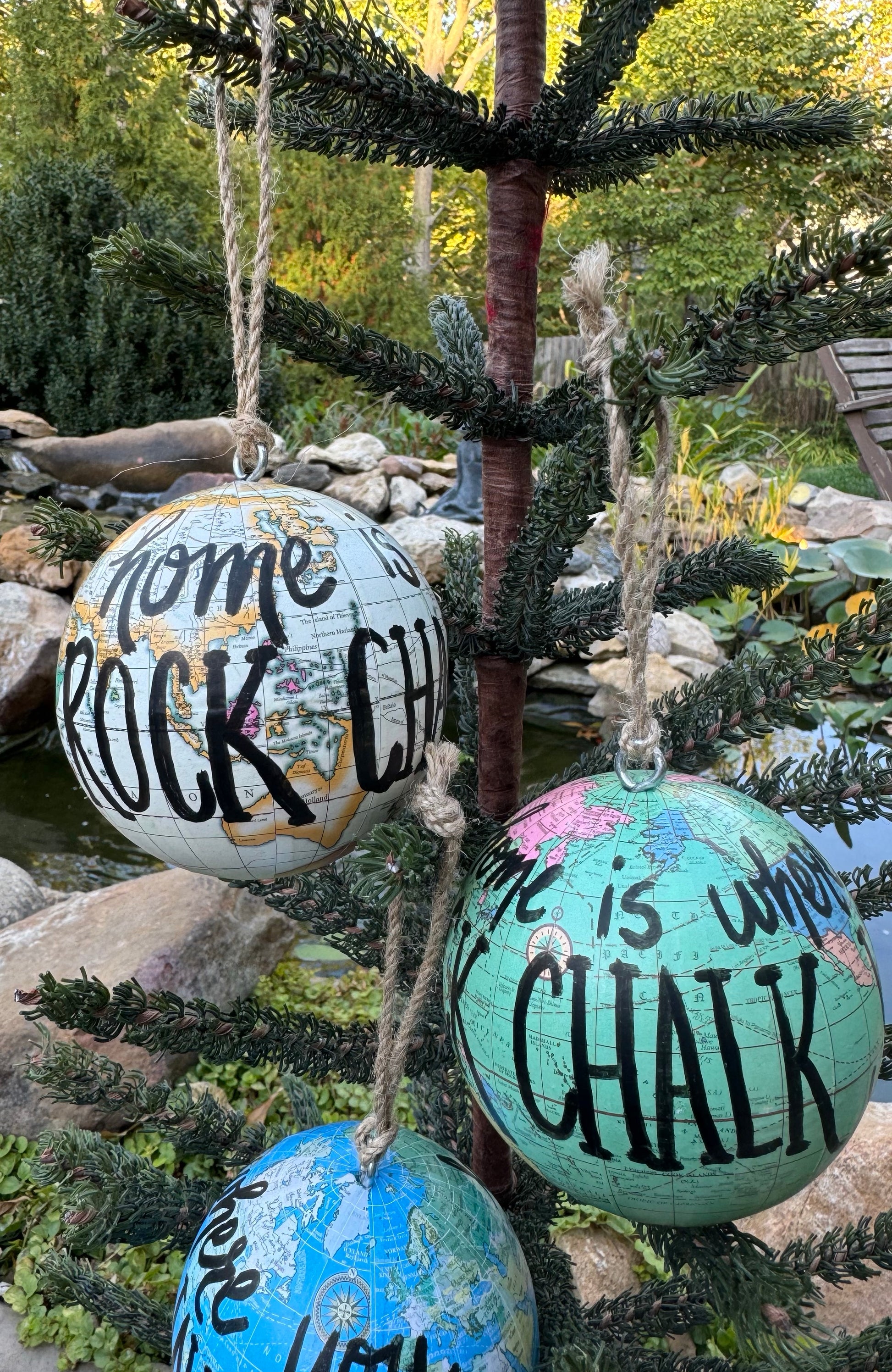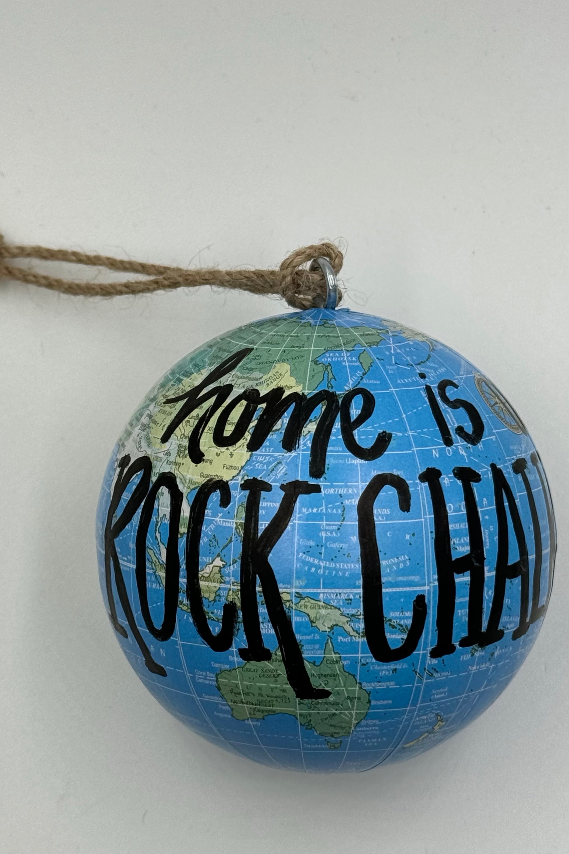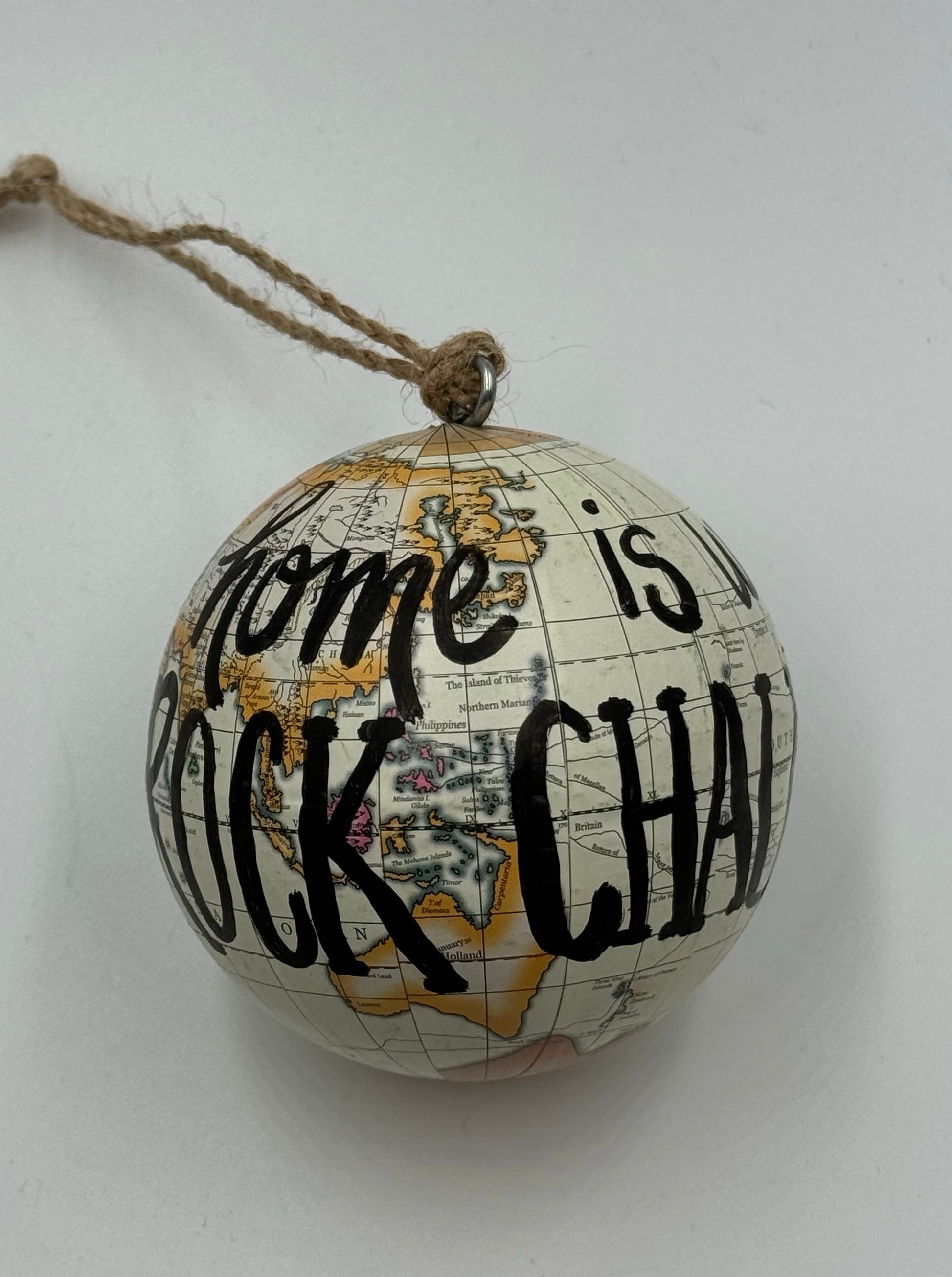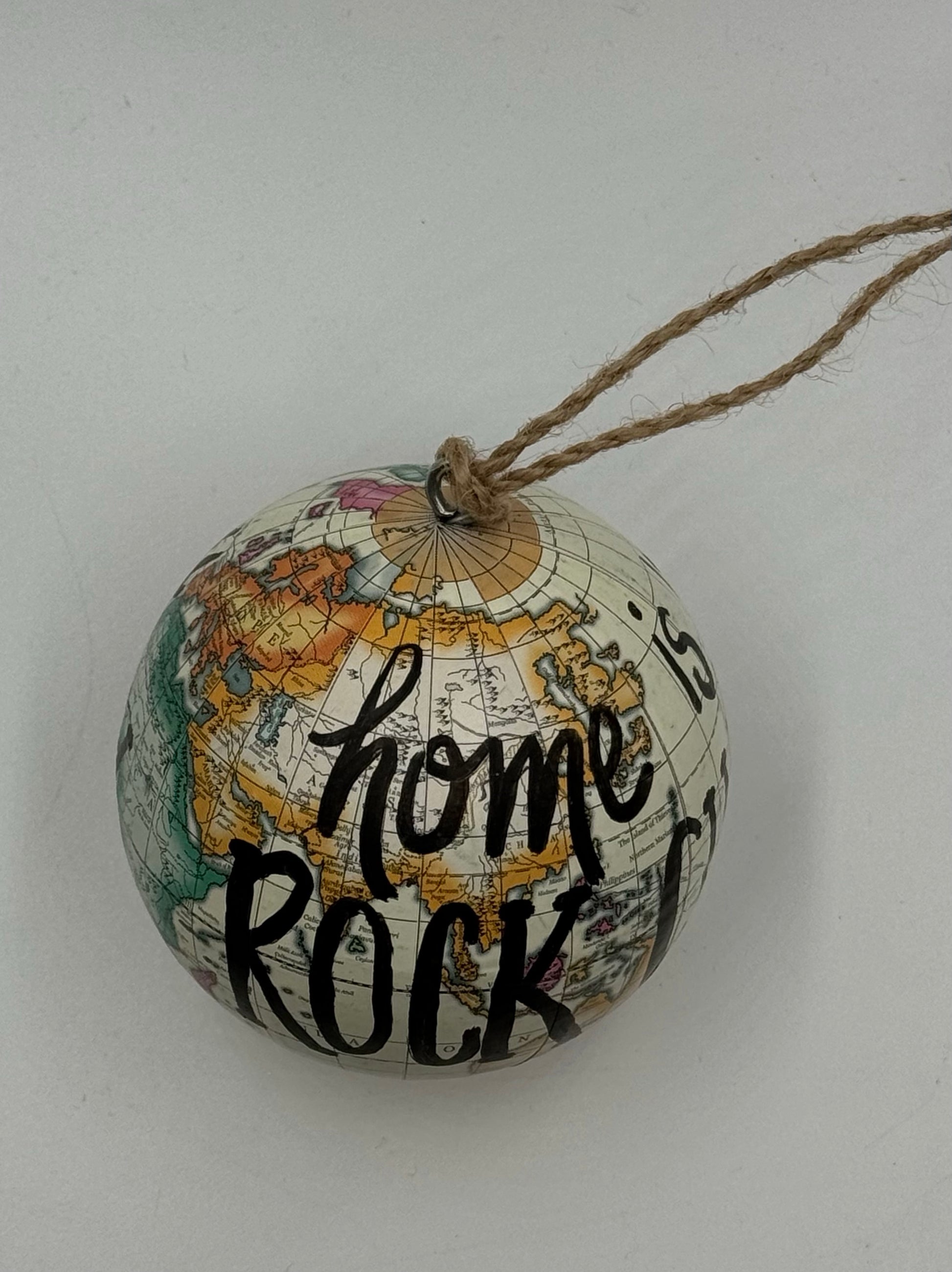 “Home is where you Rock Chalk Jayhawk” Map Globe Ornament
