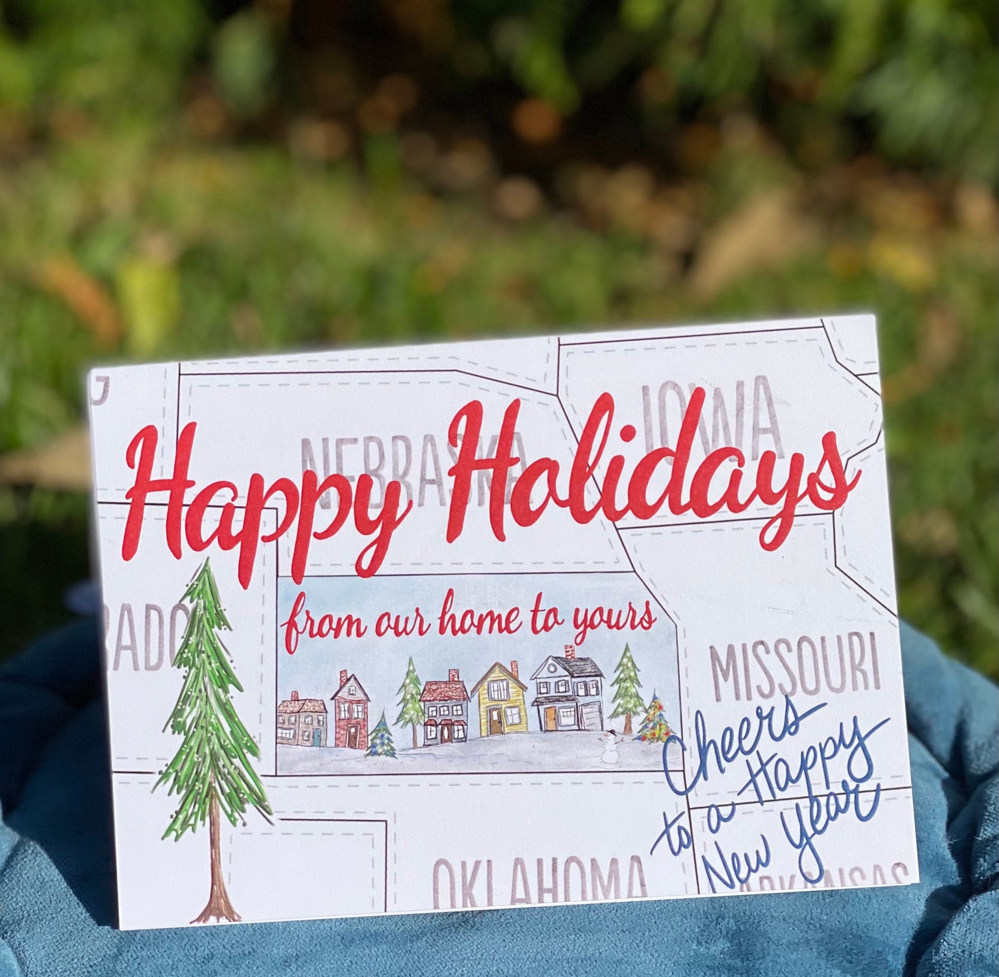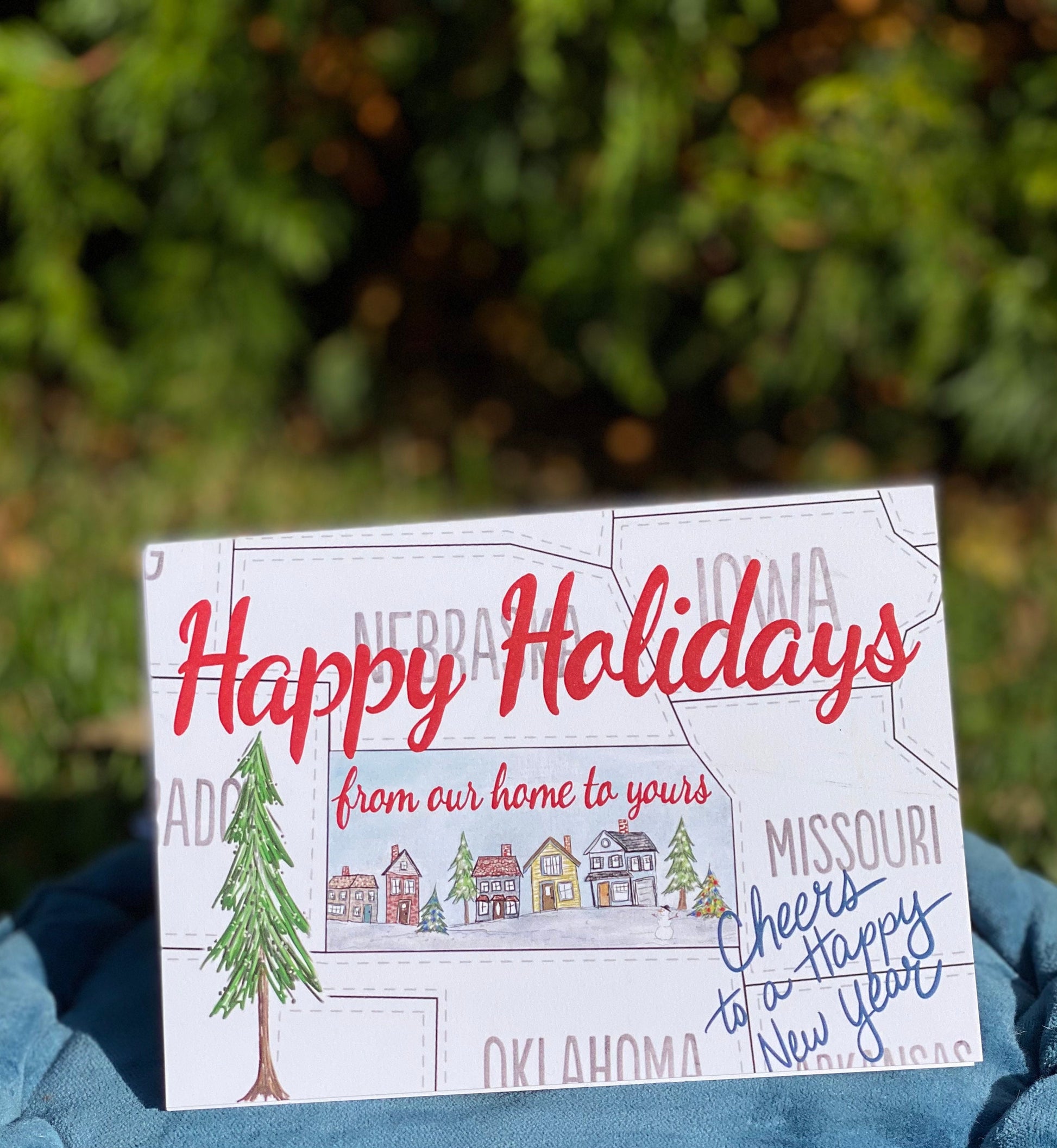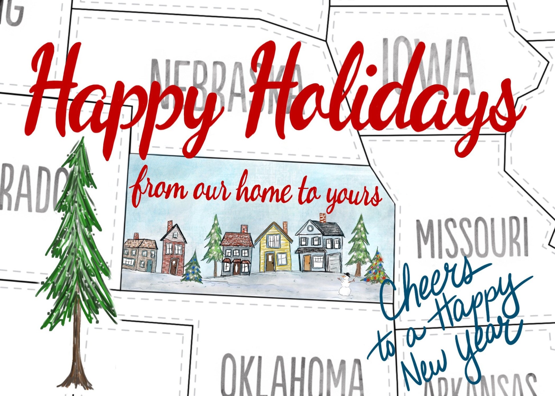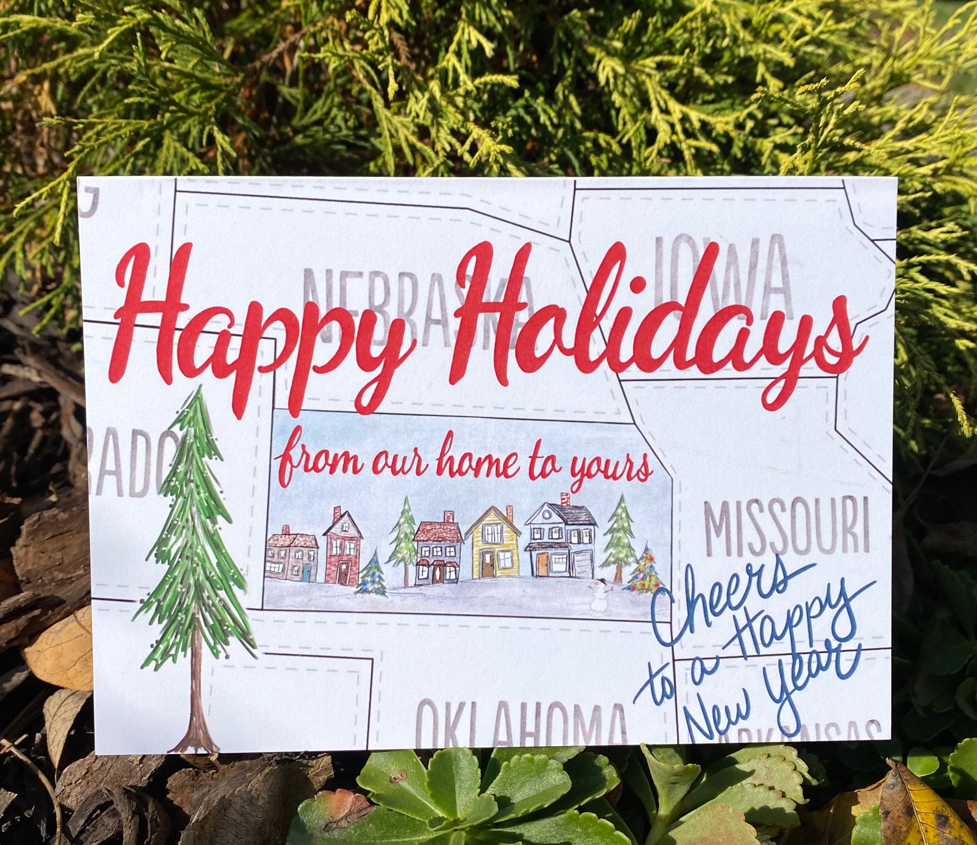 Kansas" Happy Holidays from our home to yours" greeting card