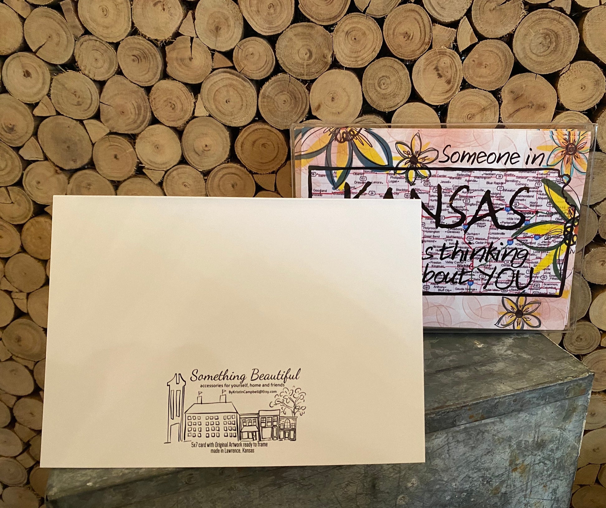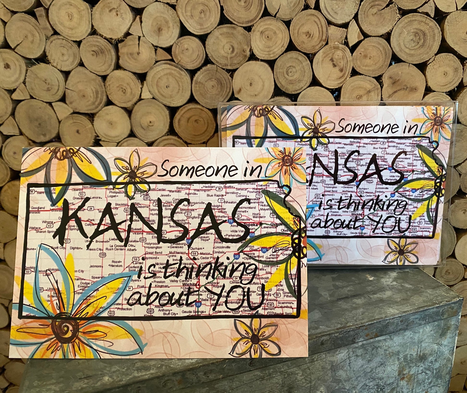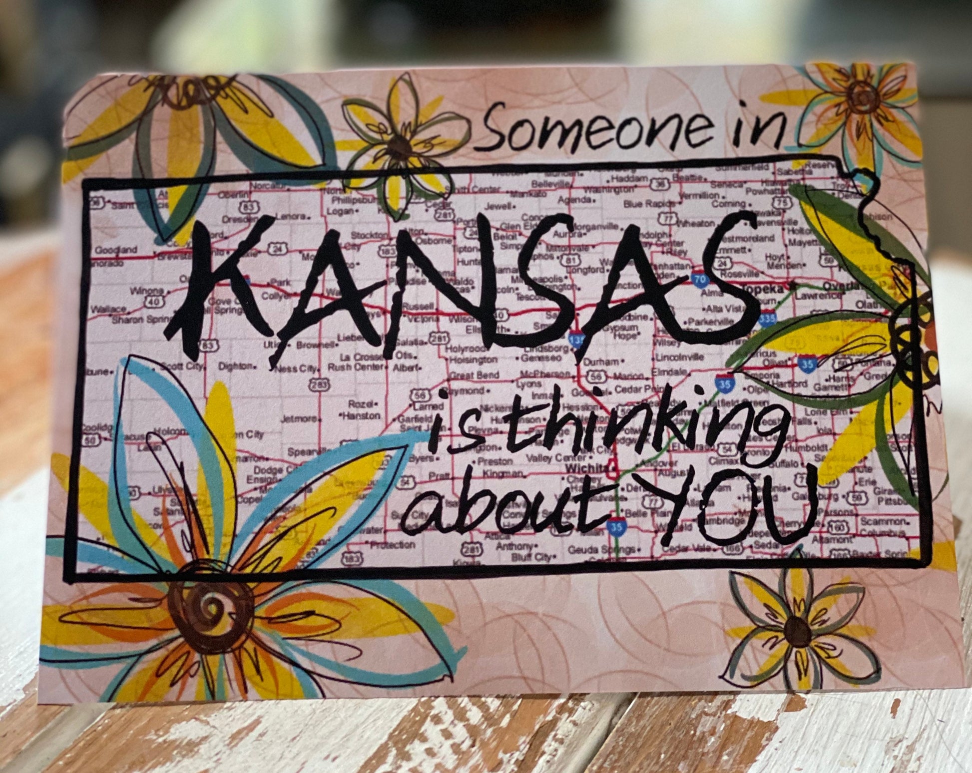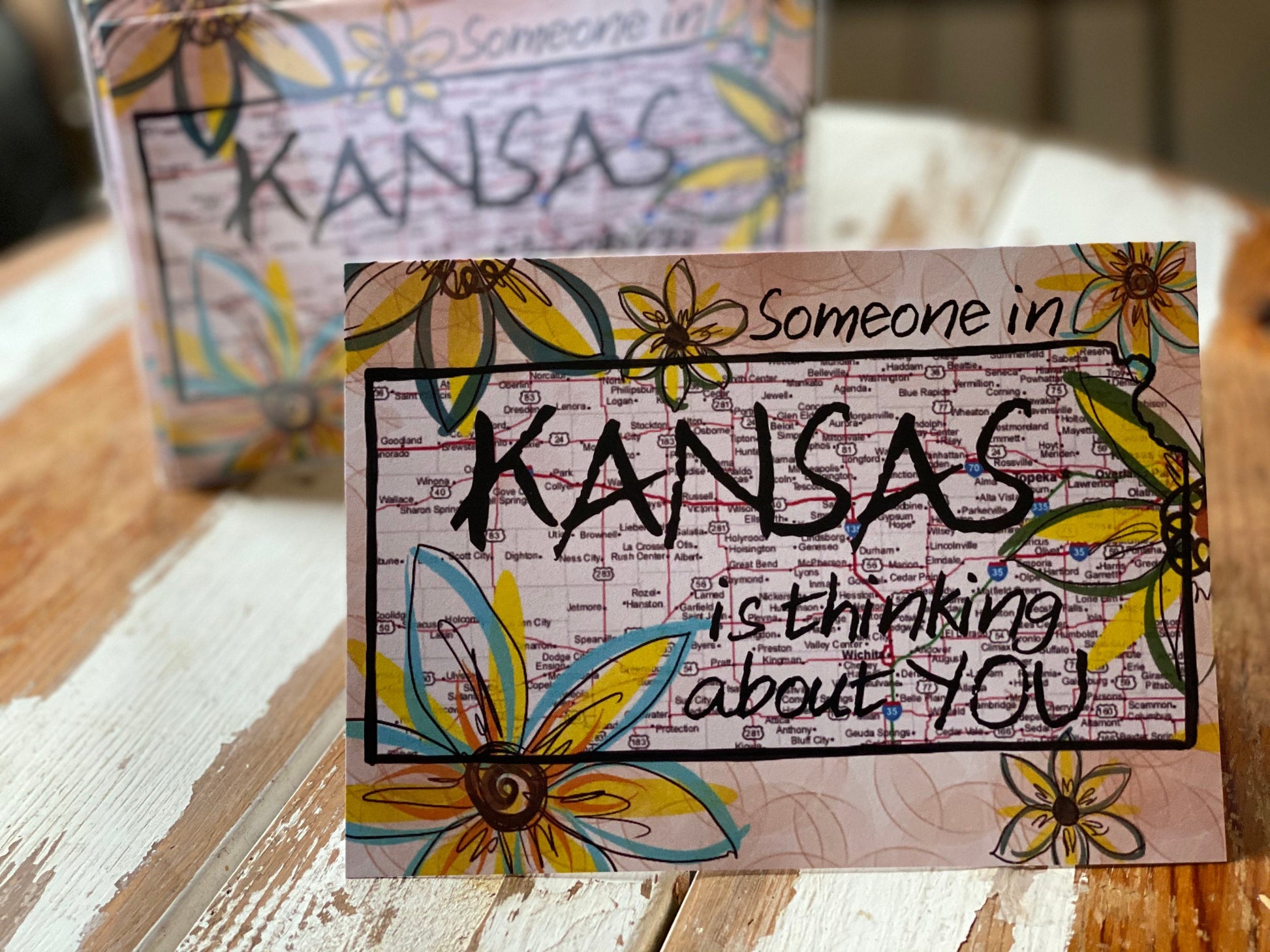 This cheerful card is covered with Kansas sunflowers and is a fun way to say hello from Kansas. Each card is 5"x7" and includes a brown craft paper envelope.