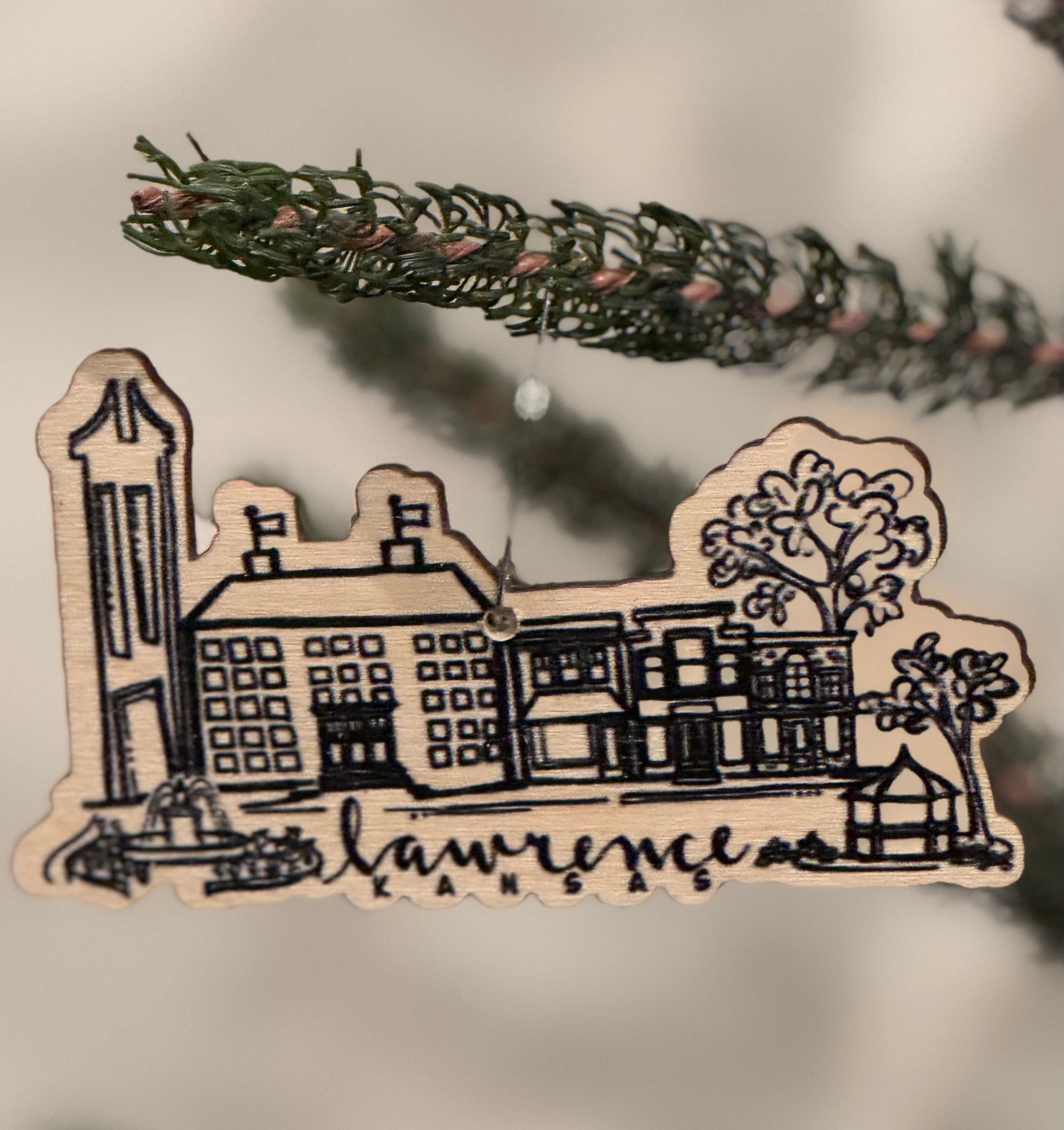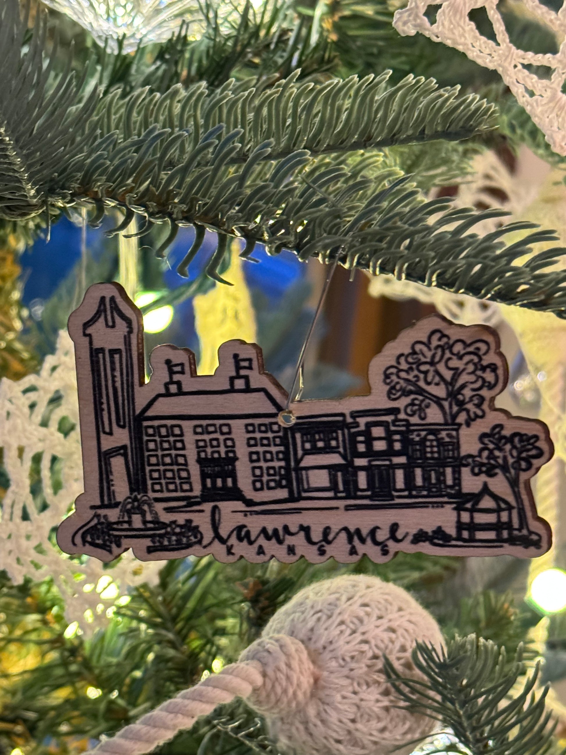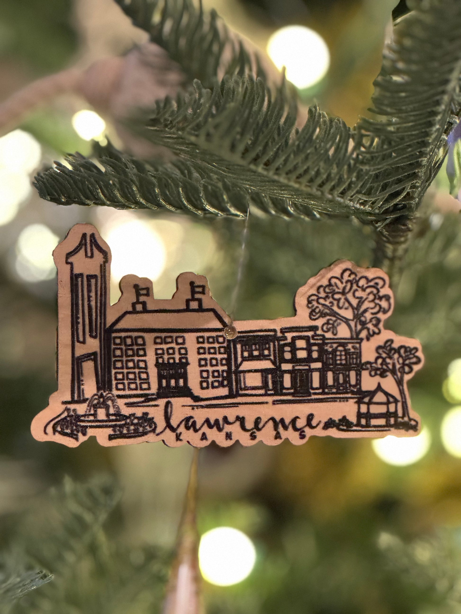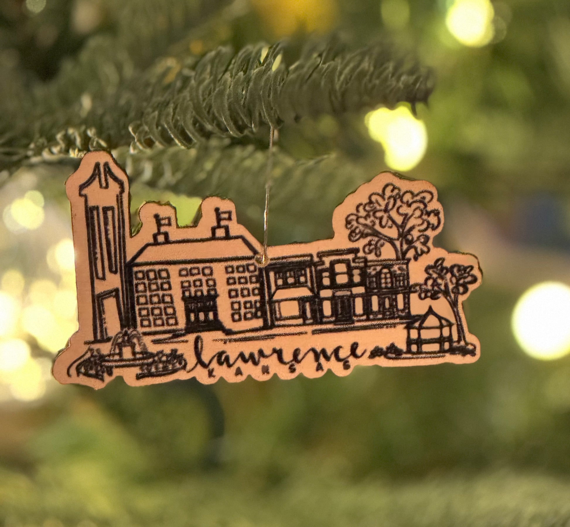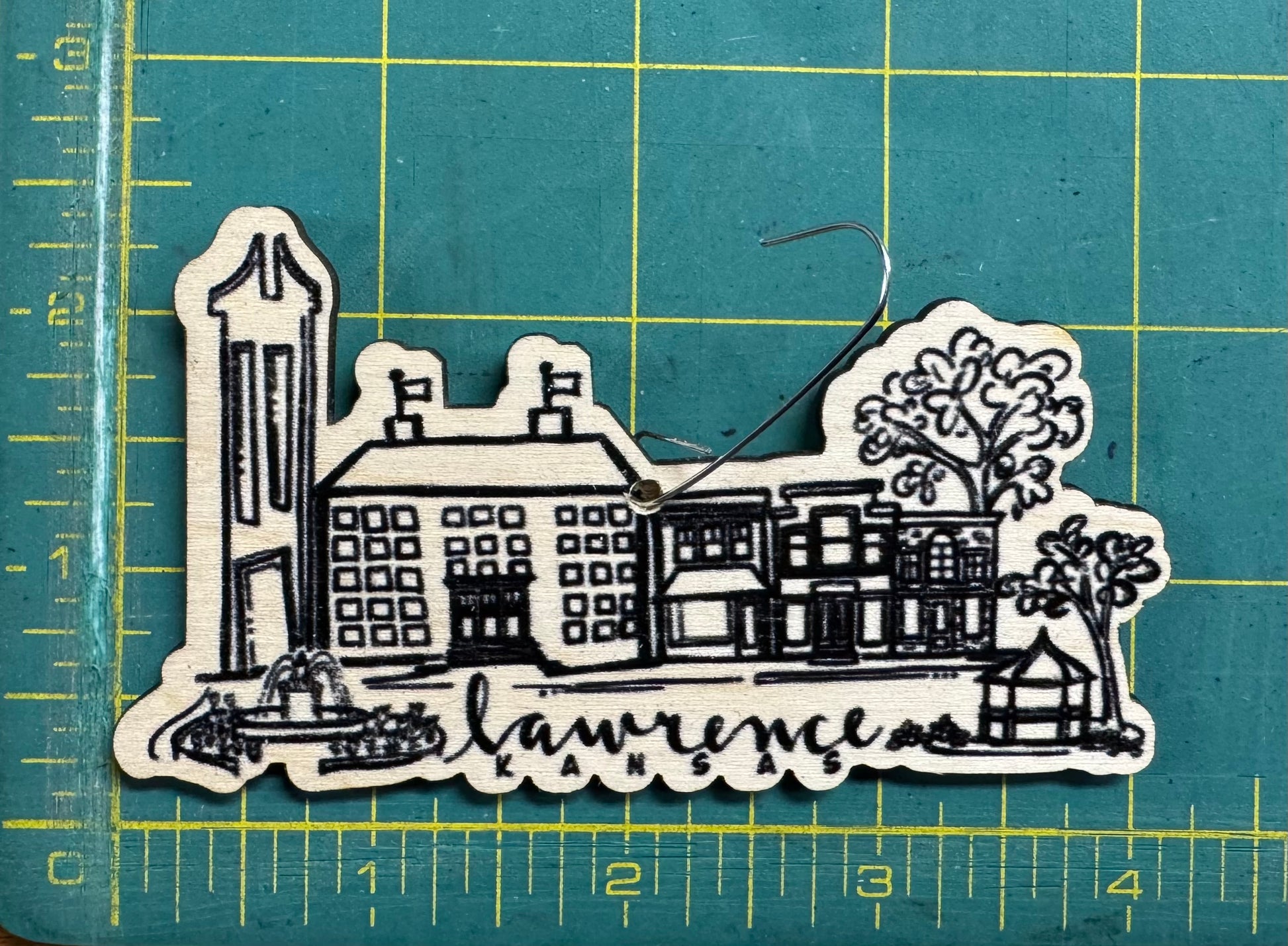 Add a touch of Lawrence, Kansas to your decor. My original Lawrence Skyline design has been professionally printed on natural wood and then outline cut to show off the buildings. The ornament measures 4”x 2.5” and comes with a wire hanger. A fun gift for those with ties to Lawrence or the University of Kansas. Take a look at some of my other Kansas ornament options and send a little love from Kansas to those on your list.