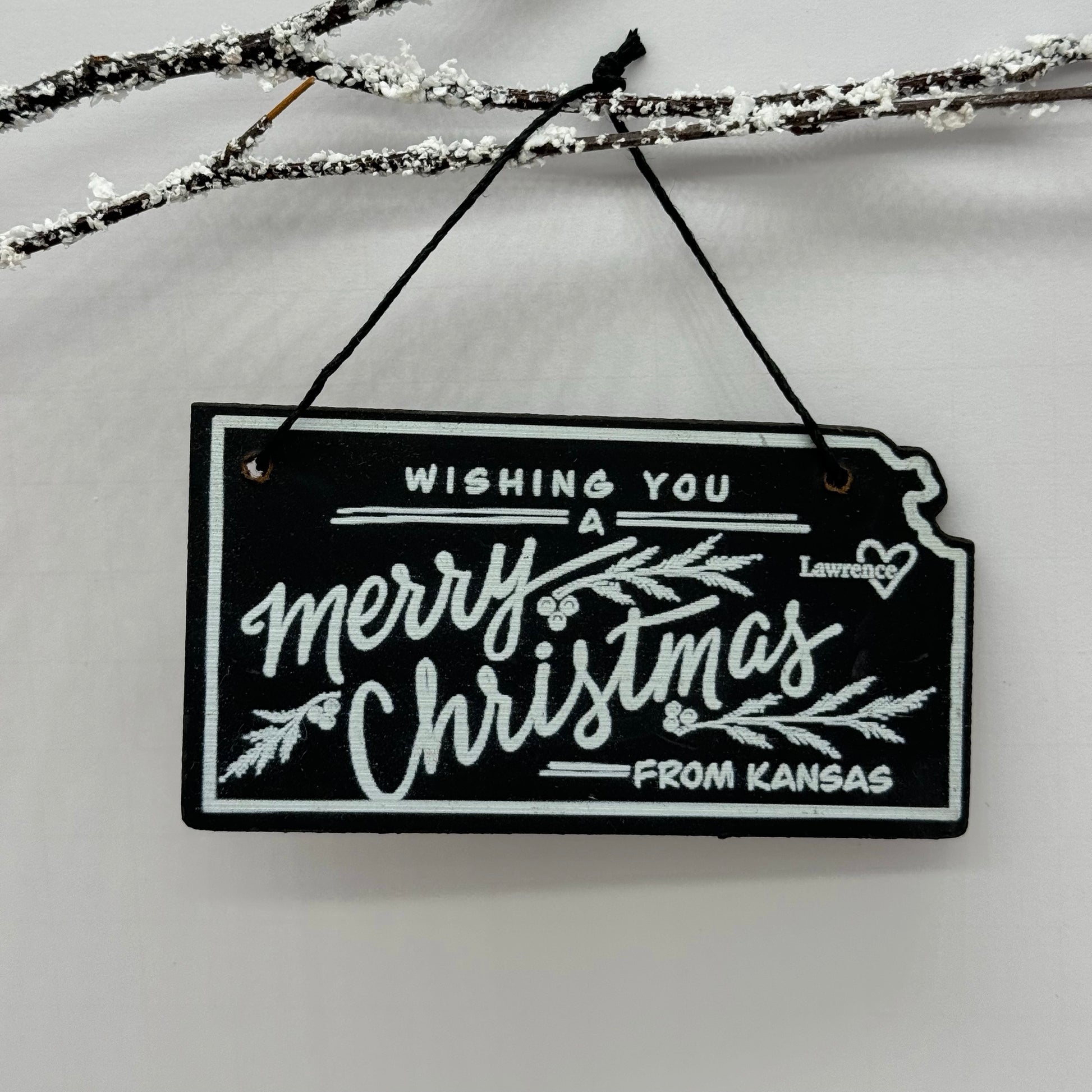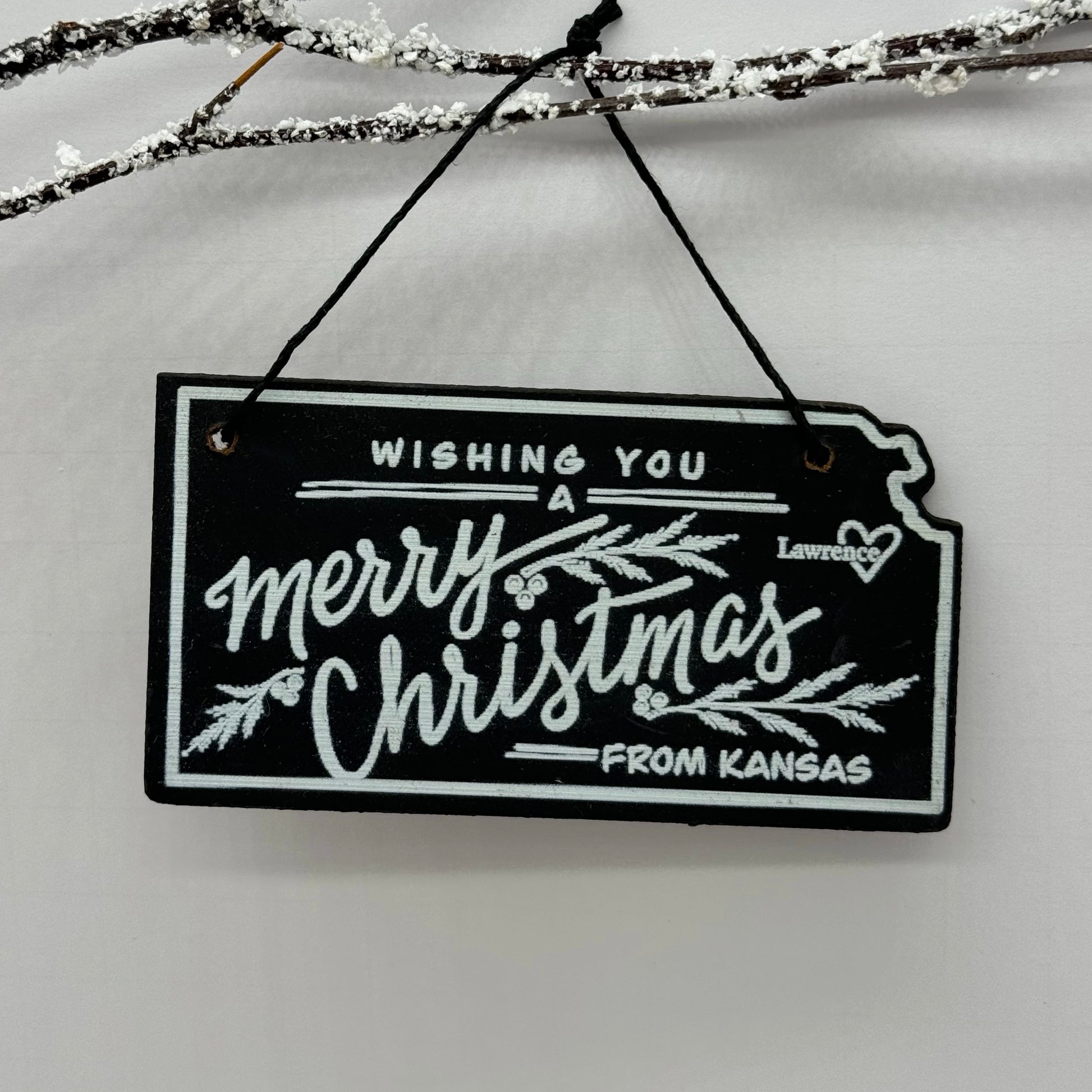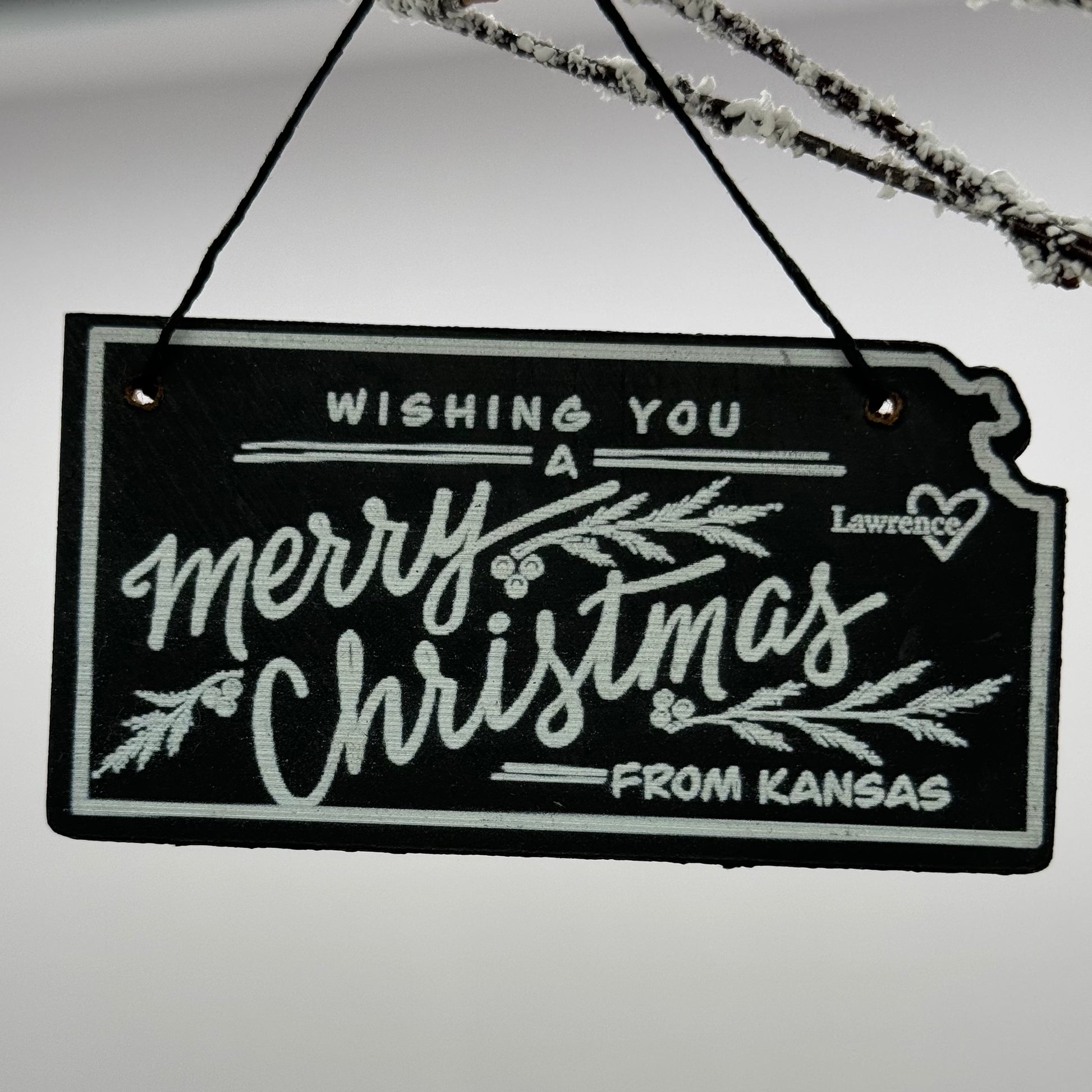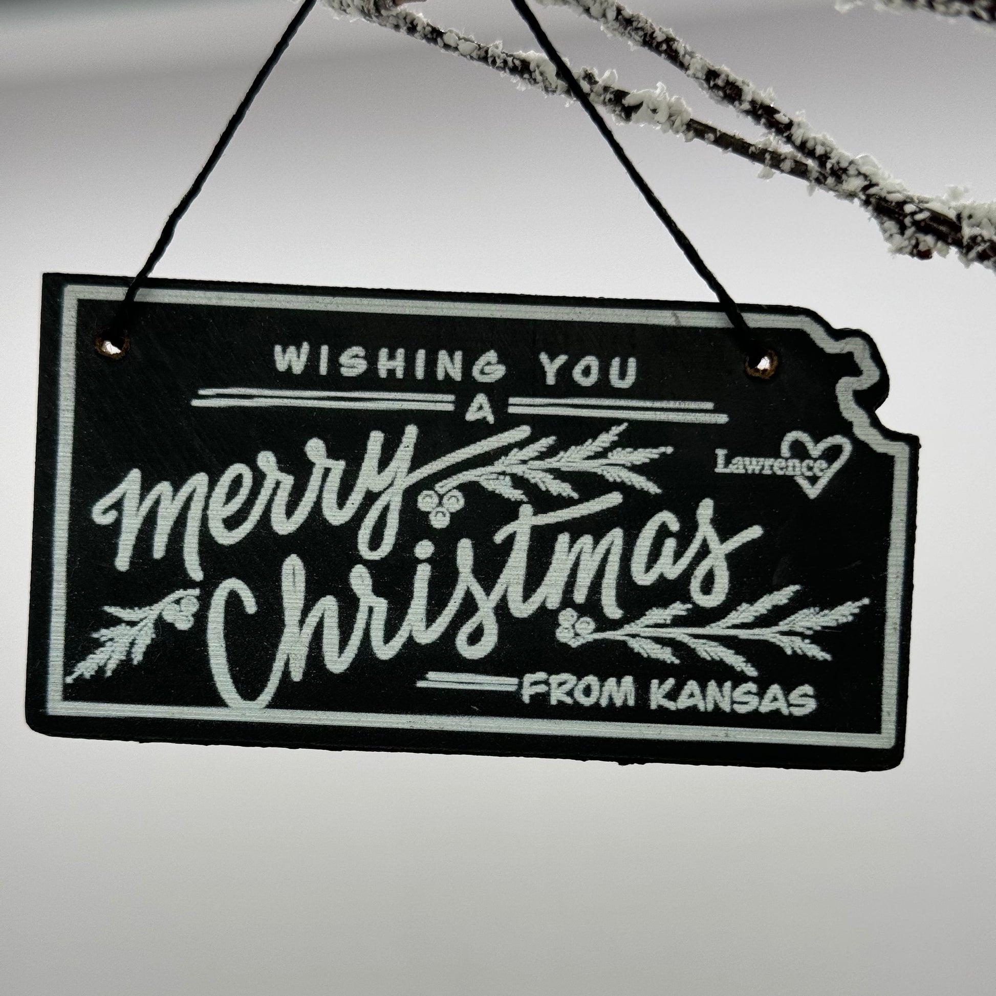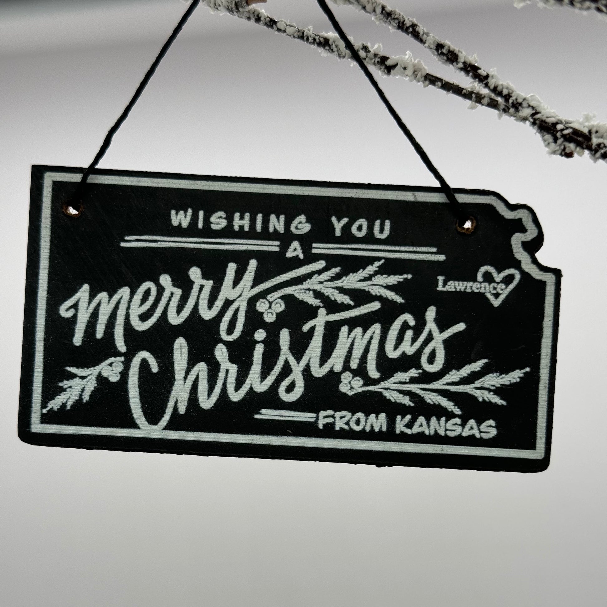"Wishing You a Merry Christmas from Lawrence, KS" Ornament