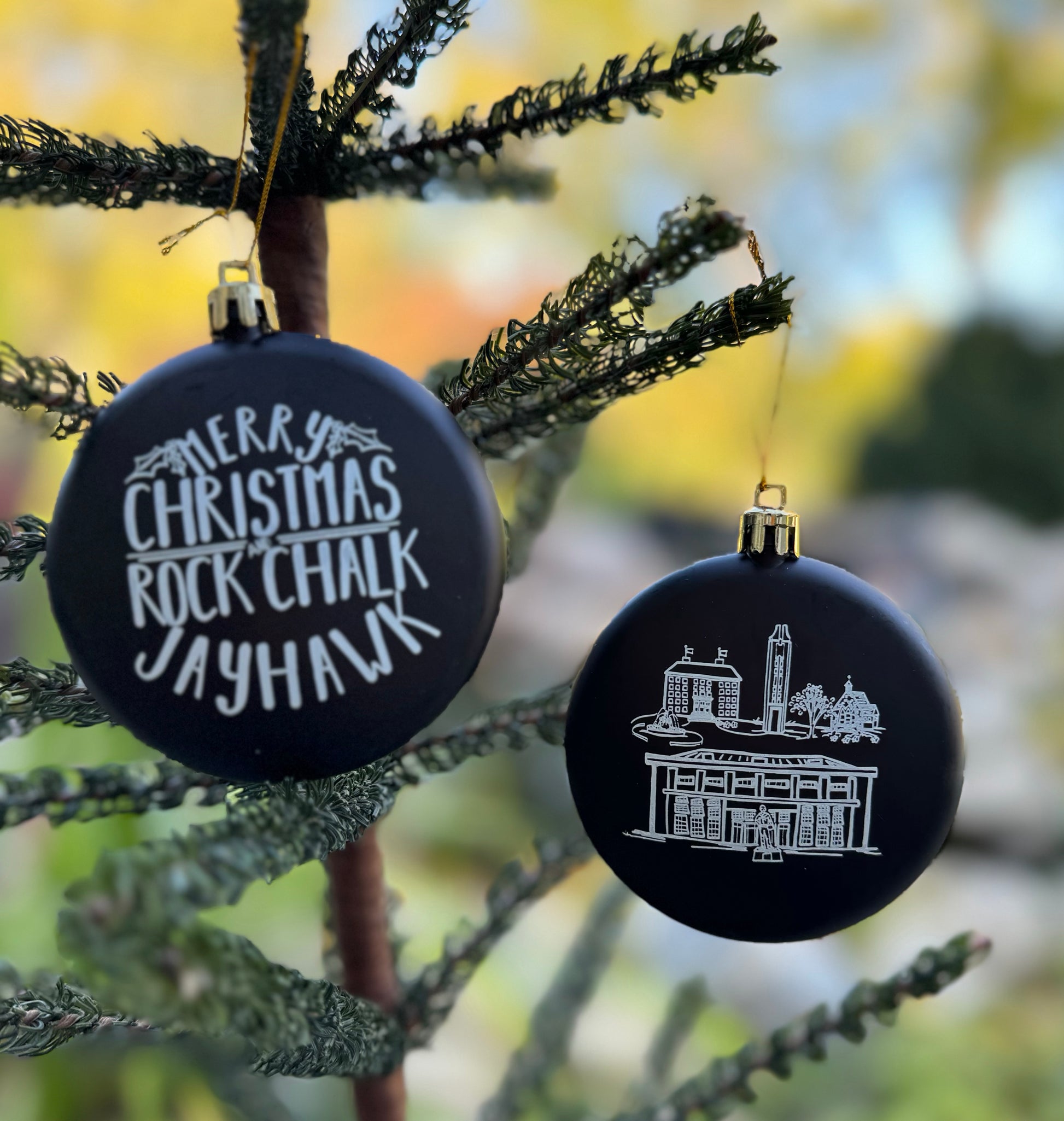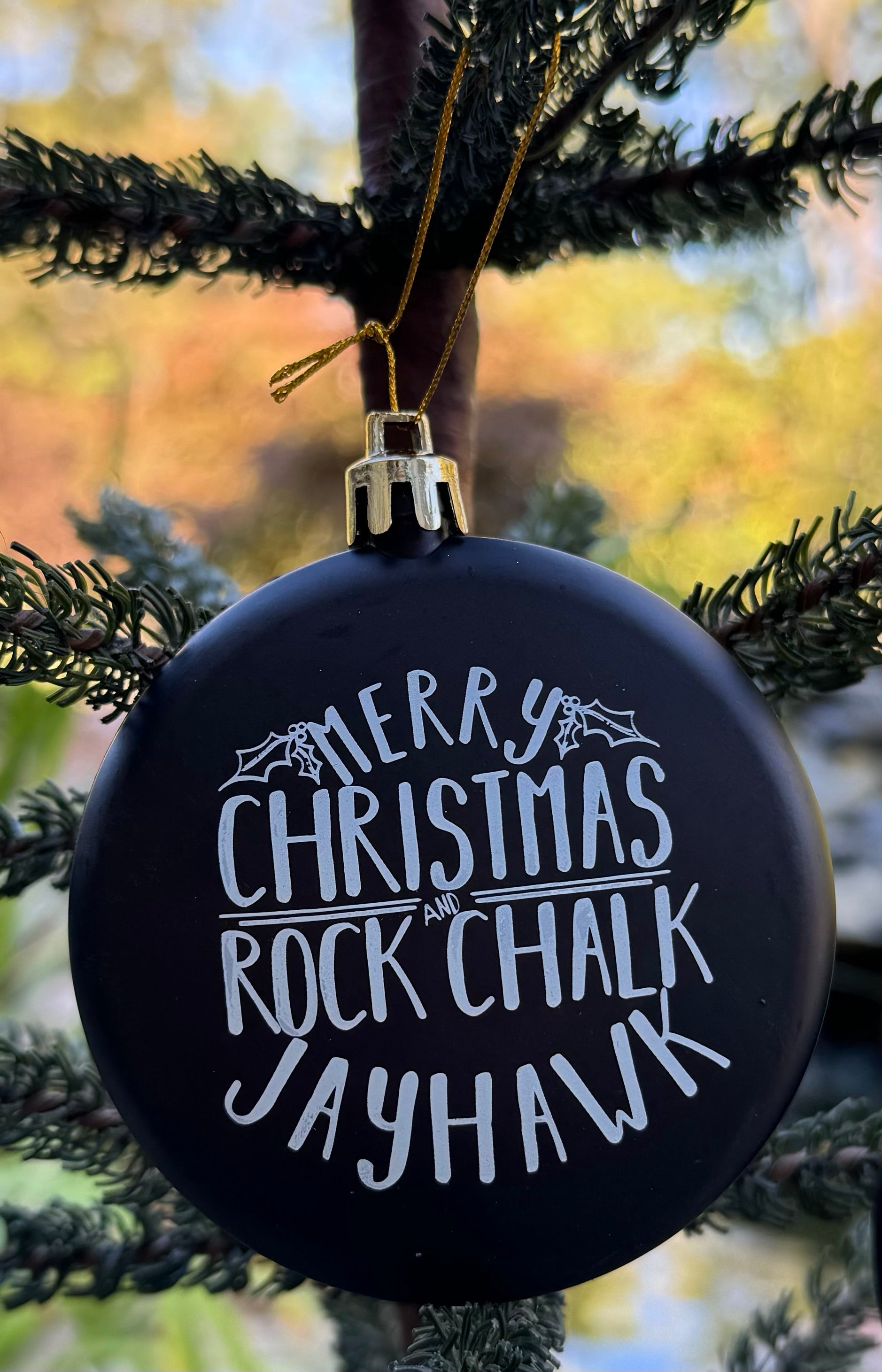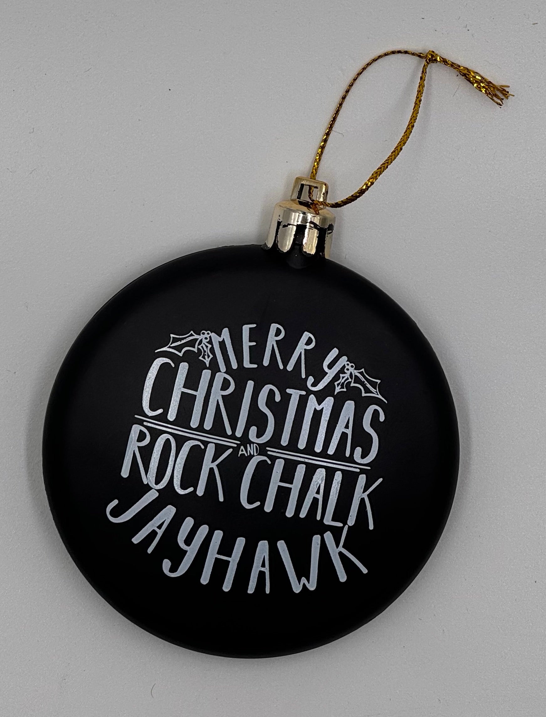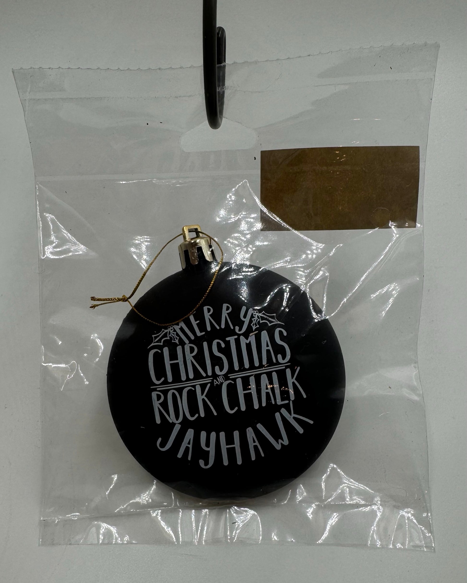 Merry Christmas & Rock Chalk Jayhawk Chalkboard Ornament