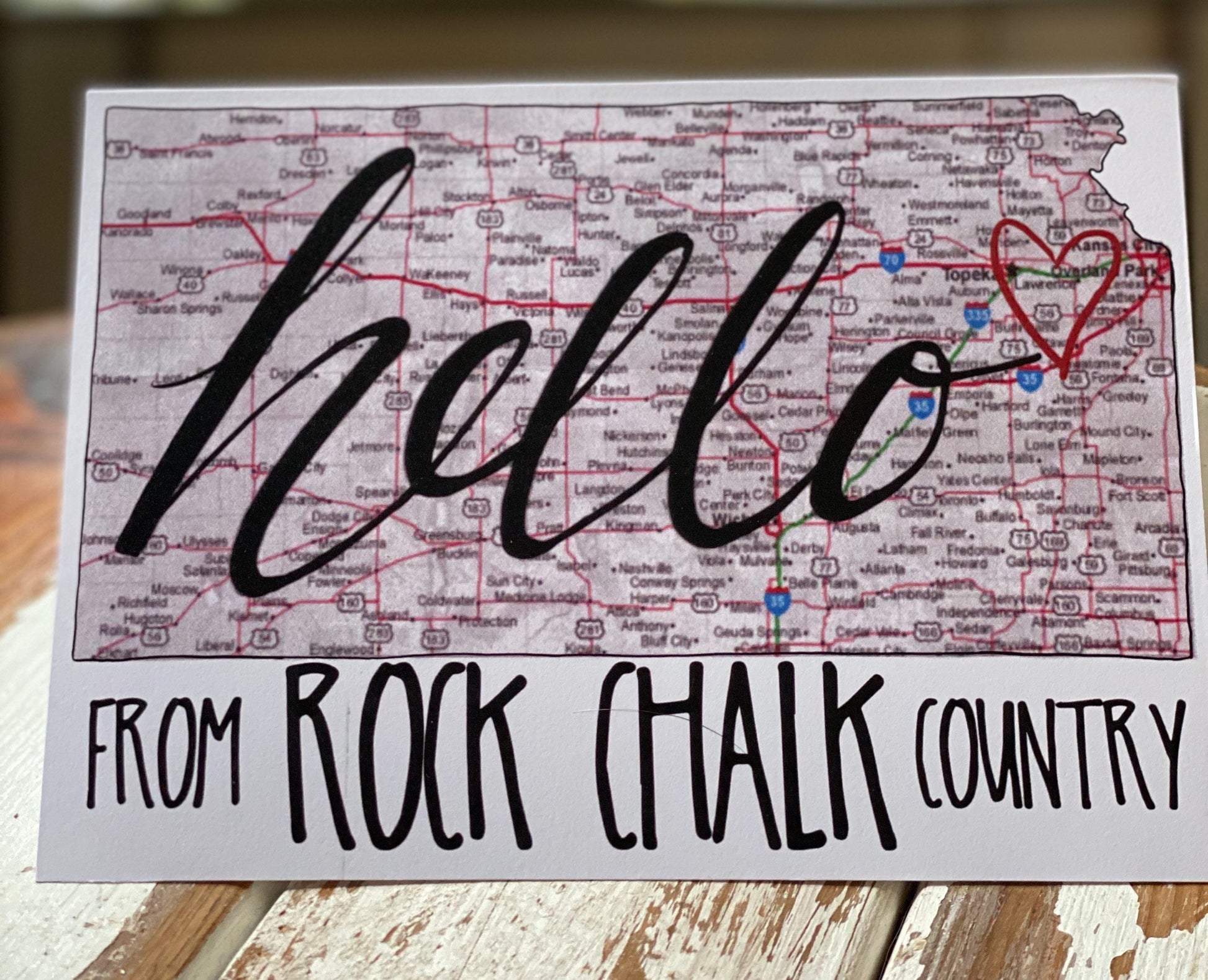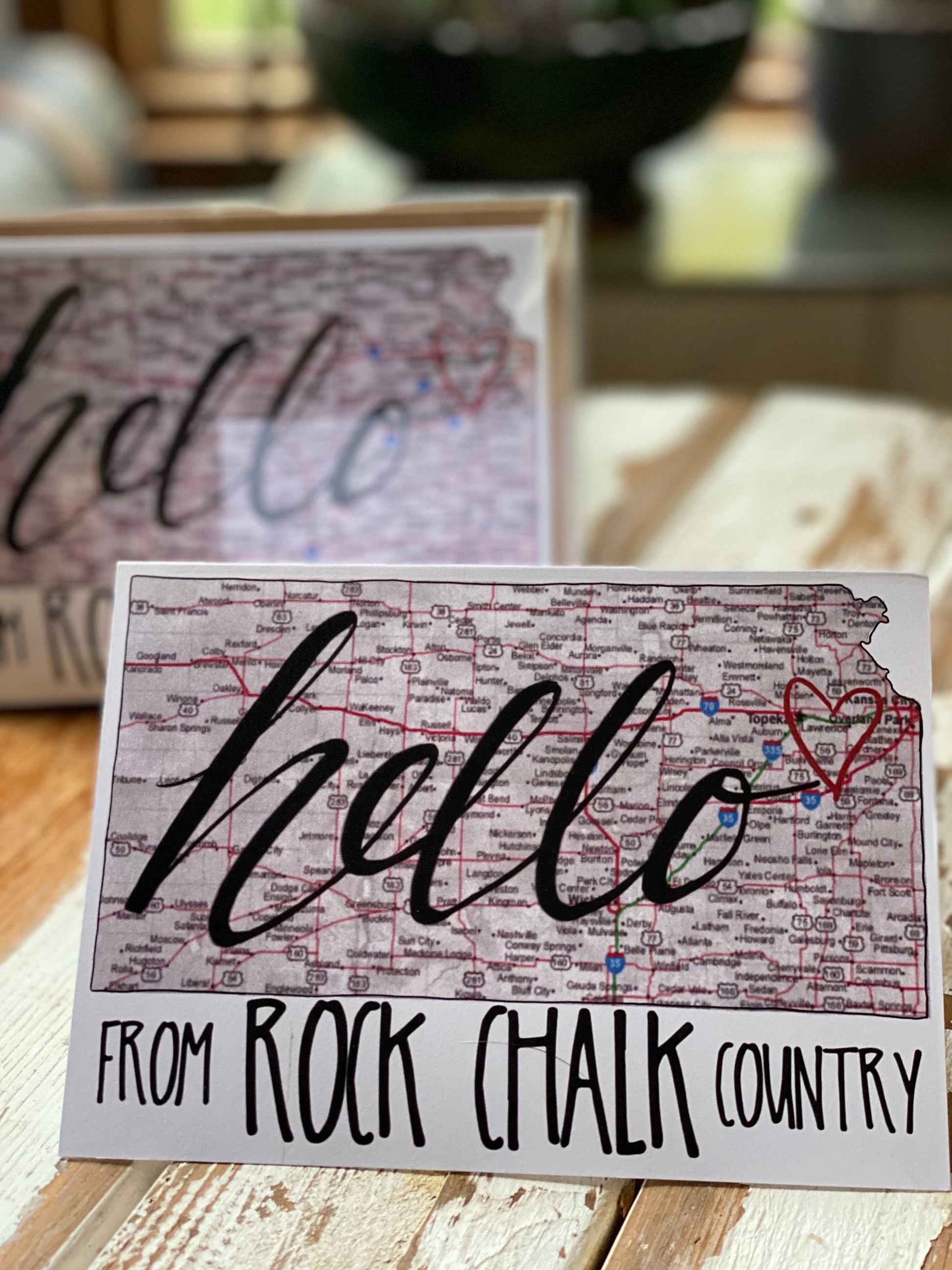Perfect for Jayhawk fans to say hello to friends and family. Card simply says “hello from ROCK CHALK country