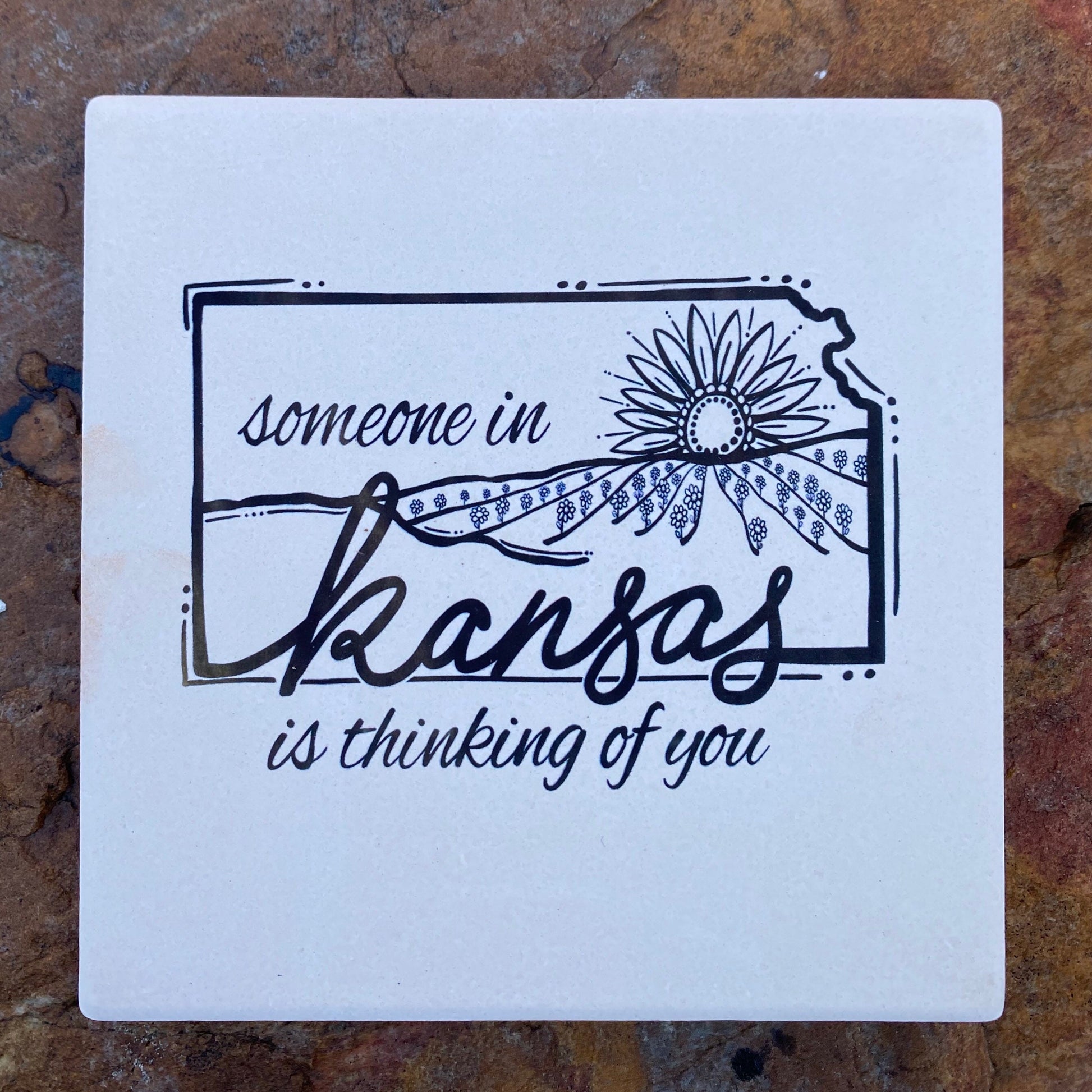 "Someone in Kansas is Thinking of You" Stone Coaster