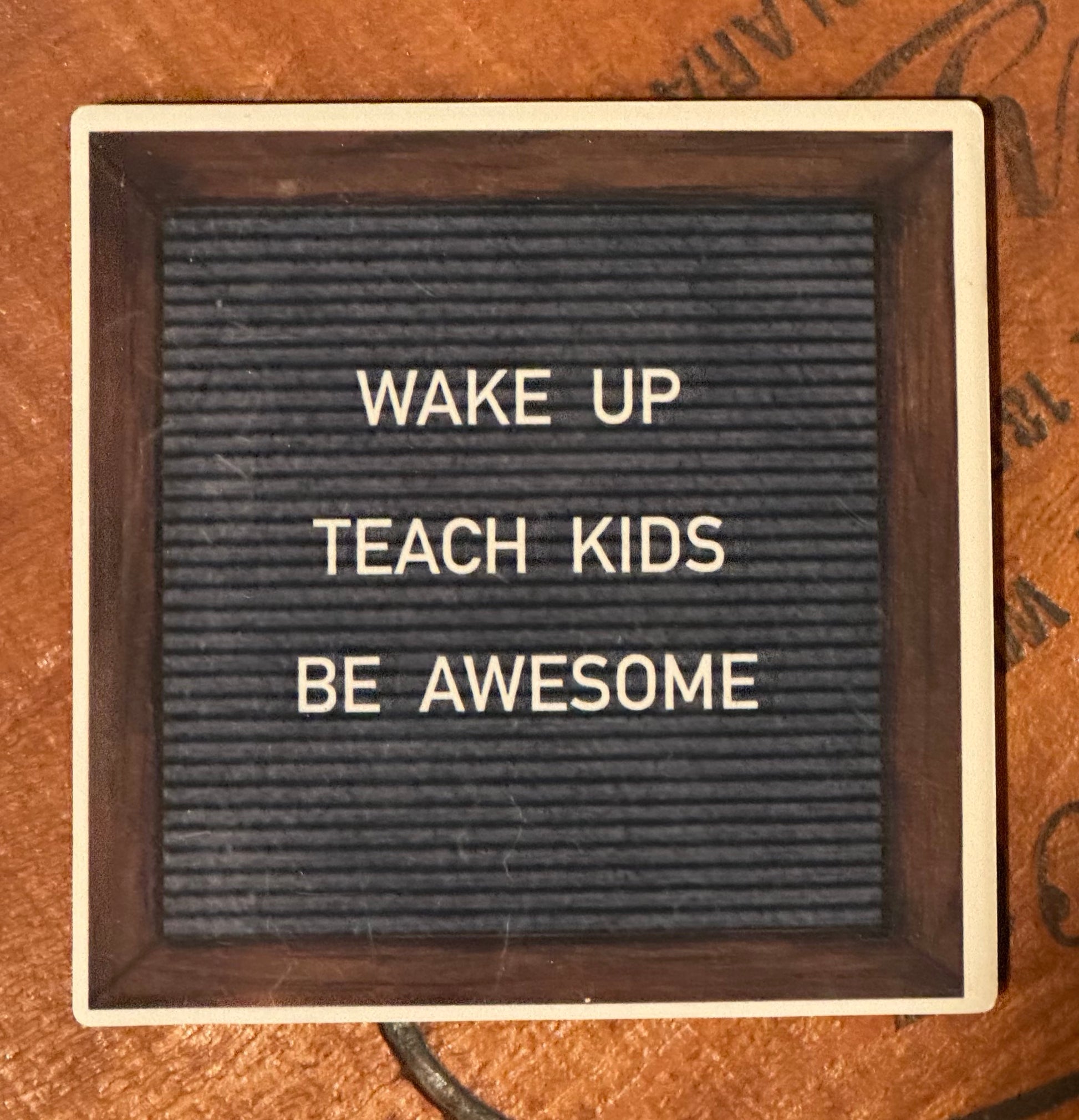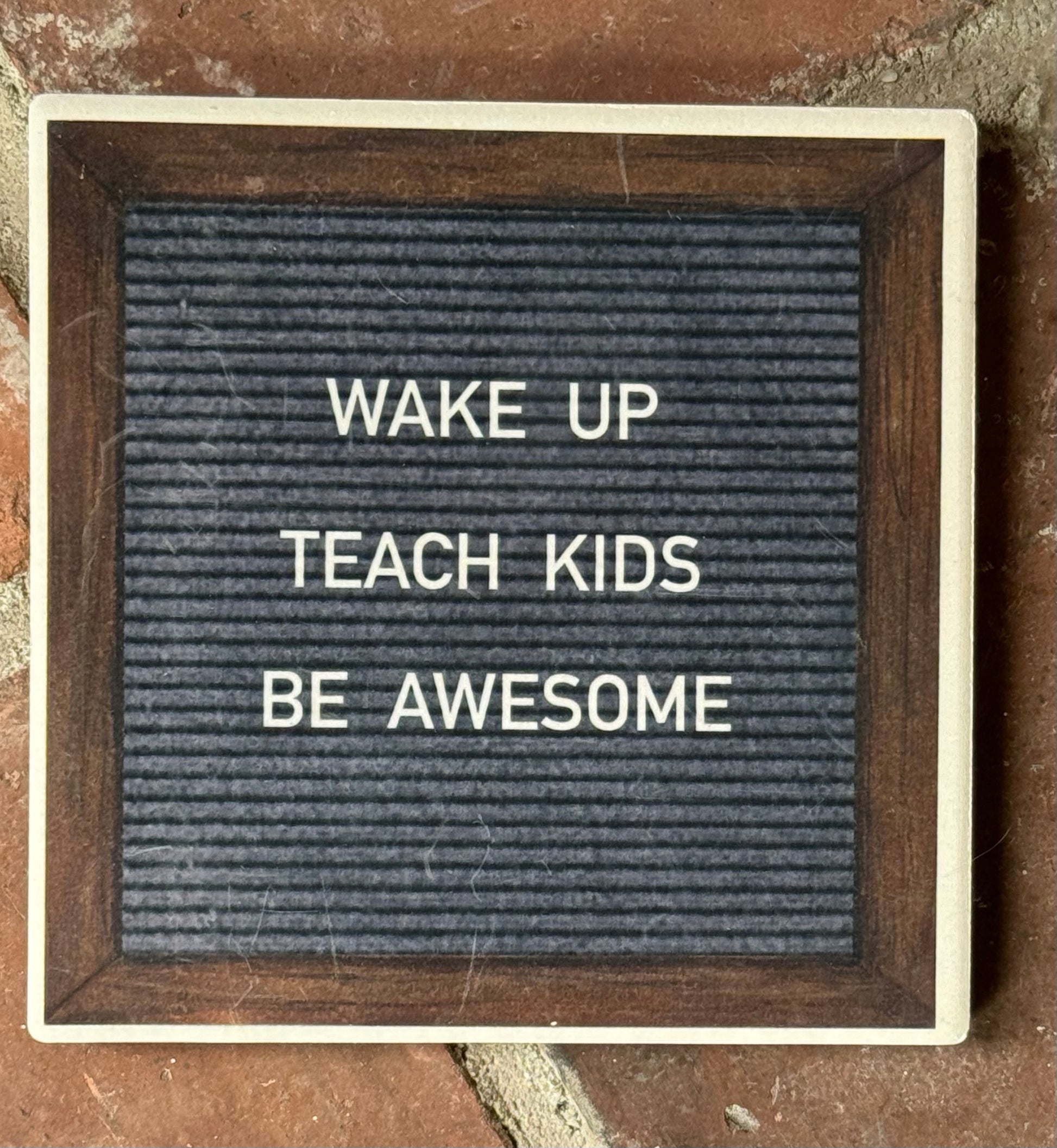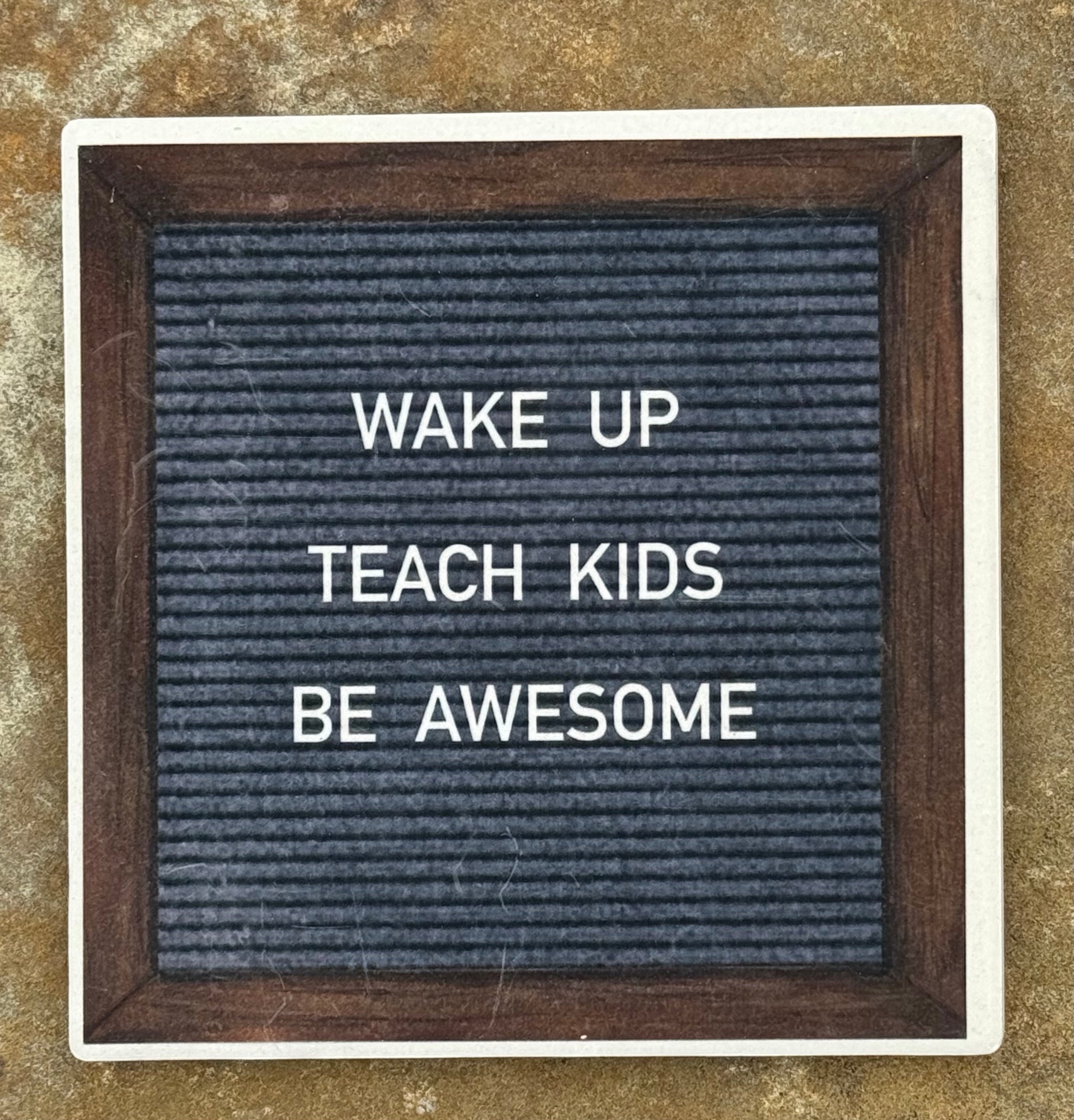 “WAKE UP, TEACH KIDS, BE AWESOME” is such a fun quote for a teacher to have on the desktop. This absorbent stone coaster is designed to look exactly like a felt letter board. The natural matte finish of the coaster gives the illusion of actual felt. My original sketch has been sublimated directly into the coaster- the image will not fade over time. Coasters measure 4.25”x 4.25” and have a cork back to protect surfaces. Take a look at my other funny quote coasters related to teachers or just for fun.